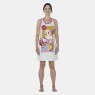 Camisola regata com estampa local na parte frontal e viés no decote e nas cavas, confeccionada em tecido meia-malha 100% algodão.