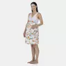 Camisola gestante regata com estampa corrida e abertura frontal com fechamento por botões tic-tac com detalhe em viés e elástico abaixo dos busto, confeccionada em tecido meia-malha 100% algodão.