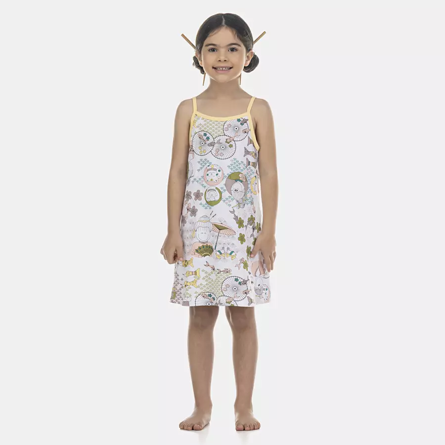 Camisola de alça com estampa corrida e detalhe em viés, confeccionada em tecido meia-malha 100% algodão.