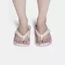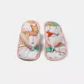 Chinelo com tiras e estampa corrida, confeccionado em tecido meia-malha 100% algodão com estampa corrida, enchimento 100% poliéster e sola em EVA.