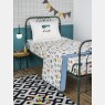 Colcha tamanho solteiro, sendo uma face tecido estampado com personagem e a outra tecido colorido, confeccionado em tecido meia-malha 100% algodão e enchimento 100% poliéster
