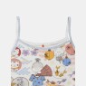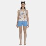 Conjunto pijama de alça com estampa corrida e detalhe em viés em tecido cotton (96% algodão / 4% elastano) e short com tecido colorido liso em meia-malha 100% algodão.