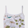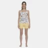 Conjunto pijama de alça com estampa corrida e detalhe em viés em tecido cotton (96% algodão / 4% elastano) e short com tecido colorido liso em meia-malha 100% algodão.