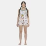 Conjunto pijama de alça com estampa local e detalhe em viés em tecido cotton (96% algodão / 4% elastano) e short com estampa corrida em meia-malha 100% algodão.