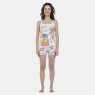 Conjunto pijama de alça com estampa local e detalhe em viés em tecido cotton (96% algodão / 4% elastano) e short com estampa corrida em meia-malha 100% algodão.