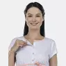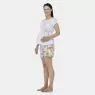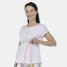 Conjunto pijama gestante manga curta em tecido liso com abertura frontal e fechamento por botões com detalhe em viés na gola e elástico abaixo do busto com laço e short com estampa corrida, confeccionados em tecido meia-malha 100% algodão.