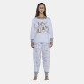 Conjunto pijama manga longa com estampa local e detalhe em viés e calça com punhos e estampa corrida, confeccionados em tecido meia-malha 100% algodão.