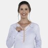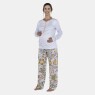 Conjunto pijama manga longa com abertura frontal por botões, com detalhe em viés na gola, confeccionada em tecido liso canelado 98% algodão e 2% elastano, e calça com estampa corrida, confeccionada em meia malha 100% algodão.