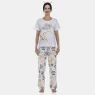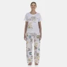 Conjunto pijama manga curta com estampa local e calça com estampa corrida, confeccionados em tecido meia-malha 100% algodão.