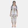 Conjunto pijama manga curta com estampa local e corsário com estampa corrida, confeccionados em tecido meia-malha 100% algodão.