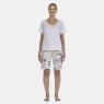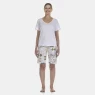 Conjunto pijama manga curta, decote V com detalhe em viés e bermuda com estampa corrida, confeccionados em tecido meia-malha 100% algodão.