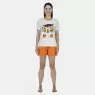 Conjunto pijama manga curta com estampa local e short em tecido colorido liso, confeccionados em tecido meia-malha 100% algodão.