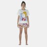 Conjunto pijama manga curta com estampa local e short com estampa corrida, confeccionados em tecido meia-malha 100% algodão.