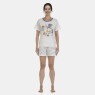 Conjunto pijama manga curta com estampa local e detalhe em viés no decote e short com estampa corrida, confeccionados em tecido meia-malha 100% algodão.