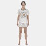 Conjunto pijama manga curta com estampa local e detalhe em viés na gola e short com estampa corrida, confeccionados em tecido meia-malha 100% algodão.