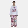 Conjunto pijama manga longa com estampa local e detalhe em viés e calça com estampa corrida, confeccionados em tecido moletinho peluciado 50% algodão e 50% poliéster.