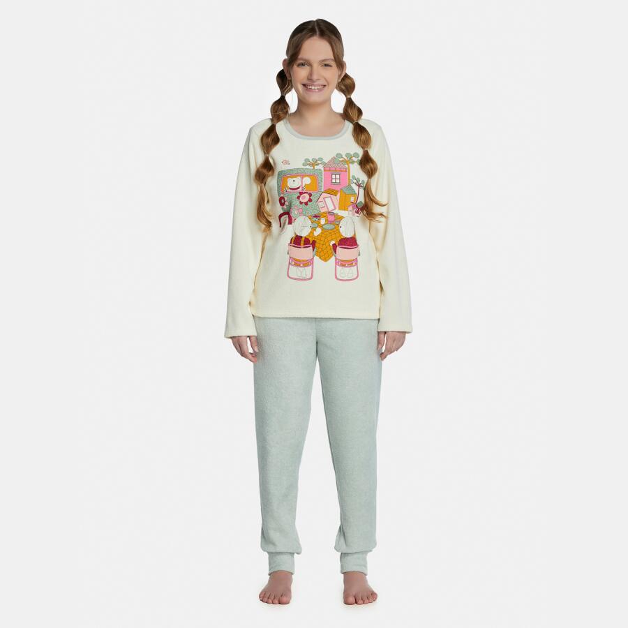 Pijama Feminino Adulto Manga Longa e Calça Plush