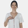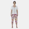 Conjunto pijama manga curta com abertura frontal, fechamento por botões e detalhe em viés, e corsário, confeccionados em tecido meia-malha 100% algodão com estampa corrida.
