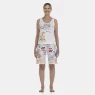 Conjunto pijama regata com estampa local e bermuda em tecido com estampa corrida, confeccionados em tecido meia-malha 100% algodão.