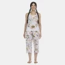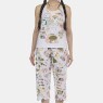 Conjunto pijama regata com estampa local e detalhe em viés e corsário com estampa corrida, confeccionados em tecido meia-malha 100% algodão.
