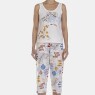 Conjunto pijama regata com estampa local e corsário com estampa corrida, confeccionados em tecido meia-malha 100% algodão.