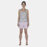 Conjunto pijama regata com estampa corrida e short colorido liso, confeccionados em tecido meia-malha 100% algodão.