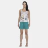 Conjunto pijama regata com estampa corrida e short com tecido colorido liso, confeccionados em tecido meia-malha 100% algodão.