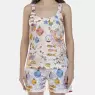 Conjunto pijama regata com estampa corrida e short com estampa corrida, confeccionados em tecido meia-malha 100% algodão.