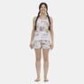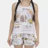 Conjunto pijama regata com estampa local e short com estampa corrida, confeccionados em tecido meia-malha 100% algodão.