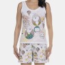 Conjunto pijama regata com estampa local e short com estampa corrida, confeccionados em tecido meia-malha 100% algodão.