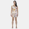 Conjunto pijama regata com estampa local e short com estampa corrida, confeccionados em tecido meia-malha 100% algodão.