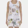 A escolha ideal para quem busca o equilíbrio perfeito entre conforto e um design encantador. Confeccionado em meia-malha 100% algodão, este conjunto de pijama oferece um toque suave e uma sensação de frescor incomparável. A regata se destaca pela estampa localizada exclusiva, que adiciona um toque de personalidade, enquanto o short com estampa corrida coordenada assegura um caimento leve e confortável. É a peça perfeita para garantir noites de sono tranquilas com muito estilo.