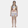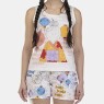 Conjunto pijama regata com estampa local e short com estampa corrida, confeccionados em tecido meia-malha 100% algodão.
