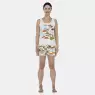 Conjunto pijama regata com estampa local e short com estampa corrida, confeccionados em tecido meia-malha 100% algodão.
