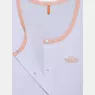 Conjunto pijama regata em tecido liso com abertura frontal e fechamento por botões com detalhe em viés e bordado e short em tecido colorido liso, confeccionados em tecido meia-malha 100% algodão.