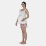 Conjunto pijama gestante regata em tecido liso com abertura frontal e fechamento por botões, detalhe em viés e elástico abaixo do busto, e short em tecido com estampa corrida, confeccionados em tecido meia-malha 100% algodão.