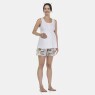 Conjunto pijama gestante regata com abertura frontal e fechamento por botões e elástico abaixo do busto, e short em tecido com estampa corrida, confeccionados em tecido meia-malha 100% algodão.