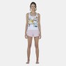 Conjunto pijama regata com estampa local, em tecido cotton (96% algodão e 4% elastano) e short em tecido atoalhado (85% algodão e 15% poliéster) e cós dobrável em malha 100% algodão.