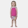 Conjunto pijama alça em tecido colorido liso e detalhe em amarração nos ombros, e short com estampa corrida, confeccionados em tecido meia-malha 100% algodão.