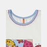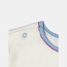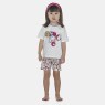 Conjunto pijama manga curta com detalhe decorativo no decote e estampa local na parte frontal, e short com estampa corrida, confeccionados em tecido meia-malha 100% algodão.