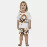 Conjunto pijama manga curta com estampa local e detalhe em viés com fechamento em tic-tac na gola para facilitar a vestibilidade e short com estampa corrida, confeccionados em tecido meia-malha 100% algodão.