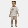 Conjunto pijama manga curta, com viés e fechamento em tic-tac na gola para facilitar a vestibilidade e estampa local na parte frontal, e short com estampa corrida, confeccionados em tecido meia-malha 100% algodão.