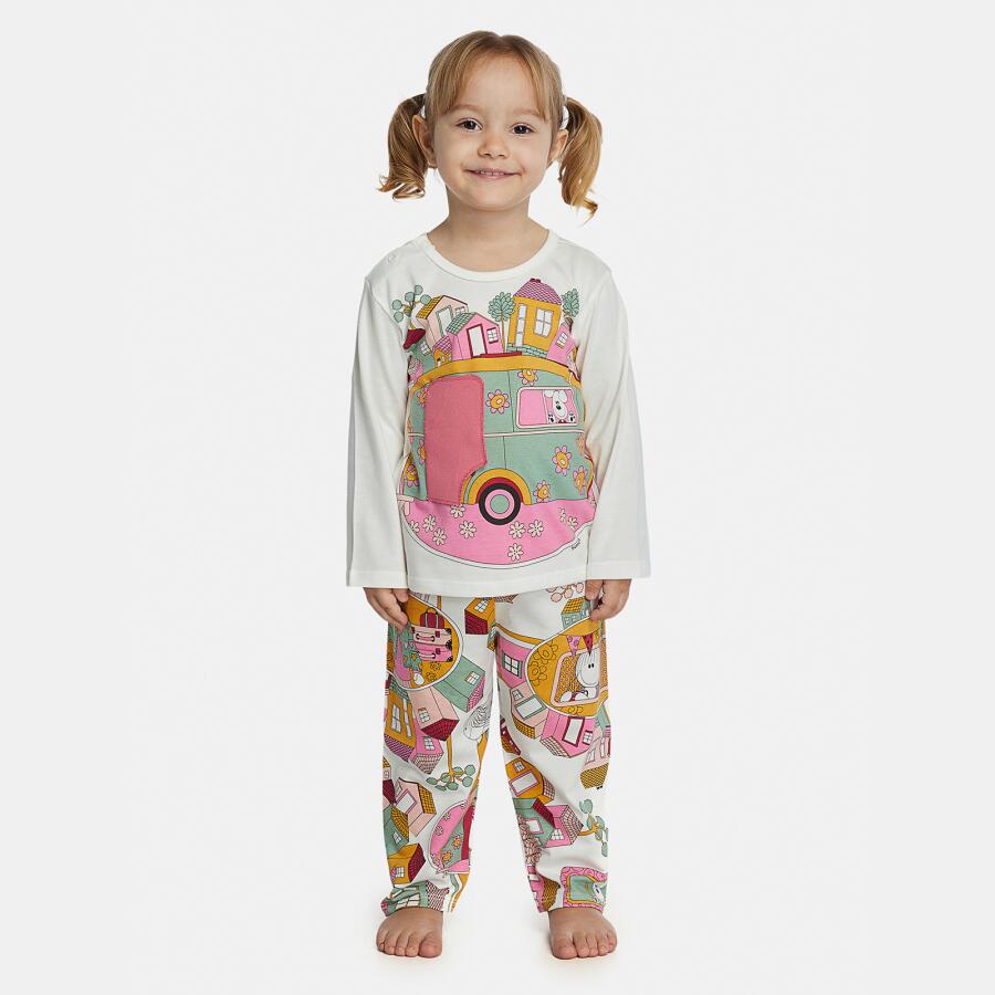 Conjunto pijama manga longa com estampa local e aplique interativo, fechamento em tic-tac na gola para facilitar a vestibilidade e calça com estampa corrida, confeccionados em tecido meia-malha 100% algodão.