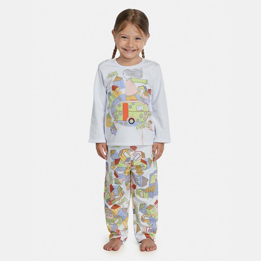 Conjunto pijama manga longa com estampa local, fechamento em tic-tac na gola para facilitar a vestibilidade e calça com estampa corrida, confeccionados em moletinho peluciado 50% algodão e 50% poliéster.