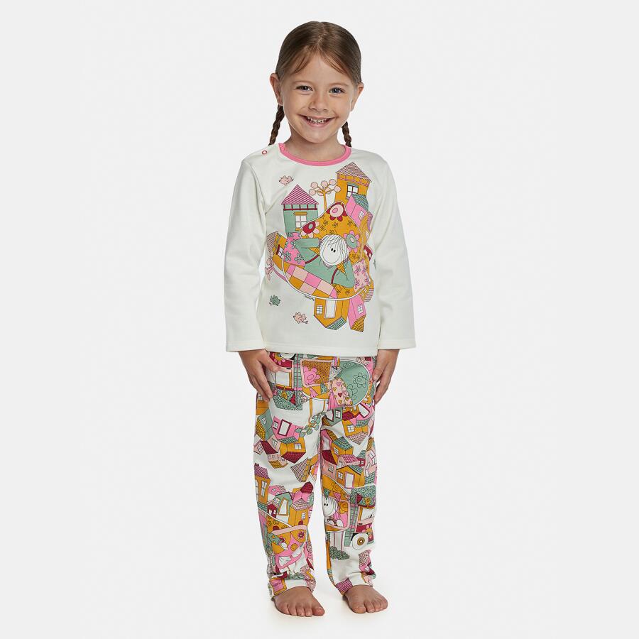 Conjunto pijama manga longa com estampa local, detalhe em viés e fechamento em tic-tac na gola para facilitar a vestibilidade e calça com estampa corrida, confeccionados em moletinho peluciado 50% algodão e 50% poliéster.