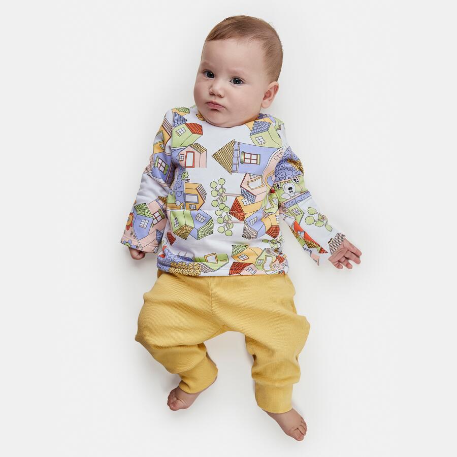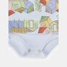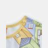 Conjunto pijama body manga longa com estampa corrida, detalhe em viés e fechamento em tic-tac na gola e entrepernas para facilitar a vestibilidade confeccionado em meia-malha 100% algodão, e calça em tecido colorido liso canelado 98% algodão e 2% elastano.