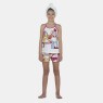 Conjunto pijama de alça com detalhe franzido na parte superior e estampa local e short com estampa corrida, confeccionados em tecido meia-malha 100% algodão.
