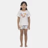 Conjunto pijama manga curta com estampa local, detalhe em viés na gola e short com estampa corrida, confeccionados em tecido meia-malha 100% algodão.
