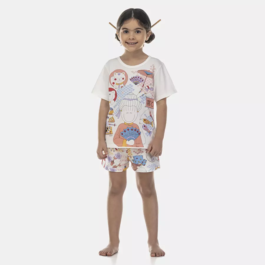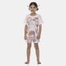 Conjunto pijama manga curta com estampa local e short com estampa corrida, confeccionados em tecido meia-malha 100% algodão.