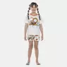 Conjunto pijama manga curta com estampa local na parte frontal com detalhe em viés no decote e short com estampa corrida, confeccionados em tecido meia-malha 100% algodão.